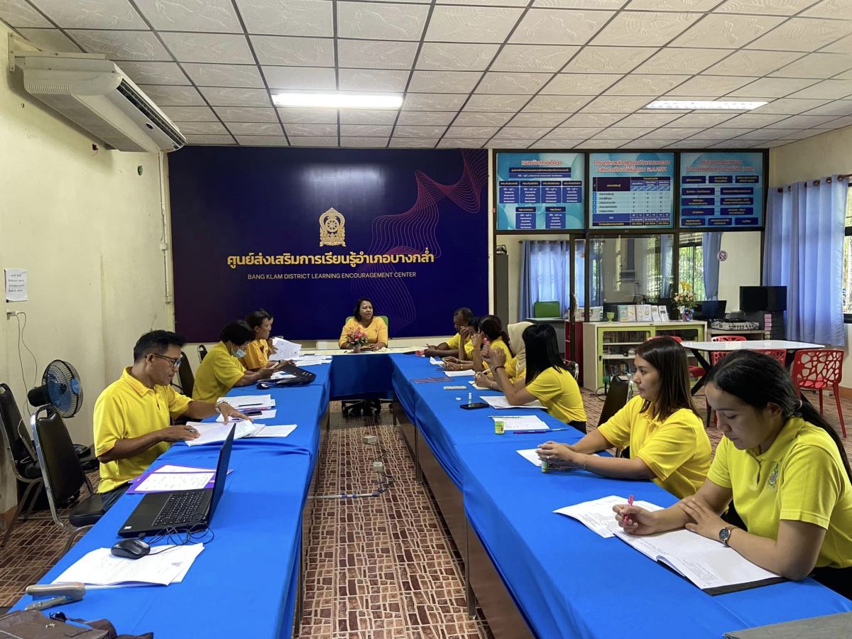 นางชุติมา พูลเกิด ผู้อำนวยการศูนย์ส่งเสริมการเรียนรู้ระดับอำเภอบางกล่ำ พร้อมด้วยบุคลากร ร่วมประชุมประจำสัปดาห์ เพื่อหารือและแจ้งการปฏิบัติงานให้บุคลากรได้รับทราบและปฏิบัติ ณ ห้องประชุมสกร.ระดับอำเภอบางกล่ำ จังหวัดสงขลา