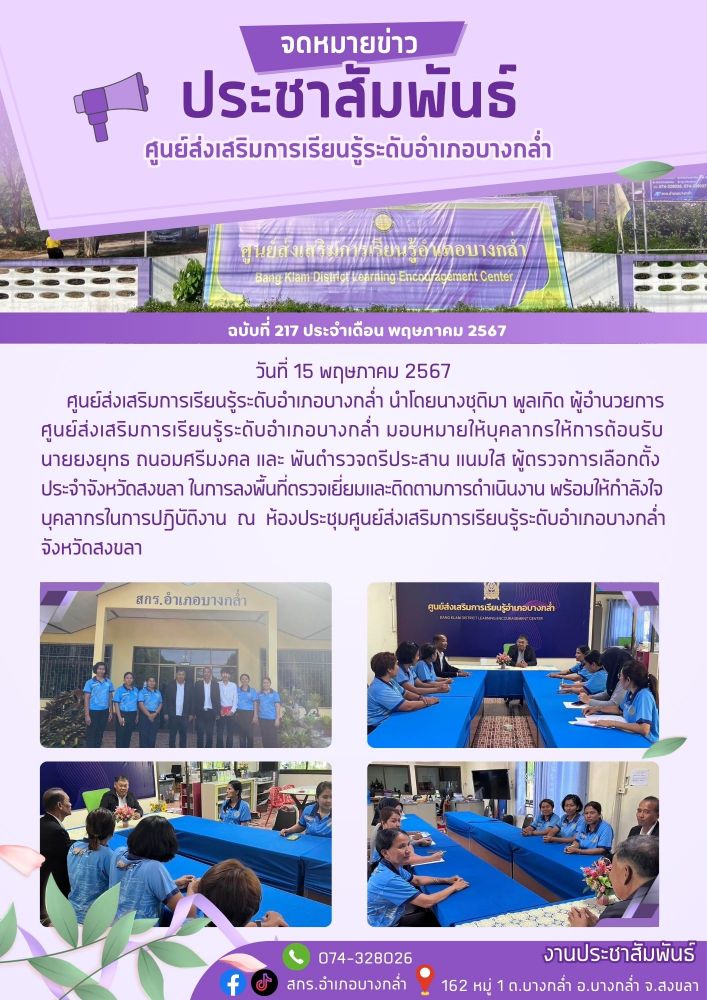 ให้การต้อนรับ นายยงยุทธ ถนอมศรีมงคล และ พันตำรวจตรีประสาน แนมใส ผู้ตรวจการเลือกตั้ง ประจำจังหวัดสงขลา