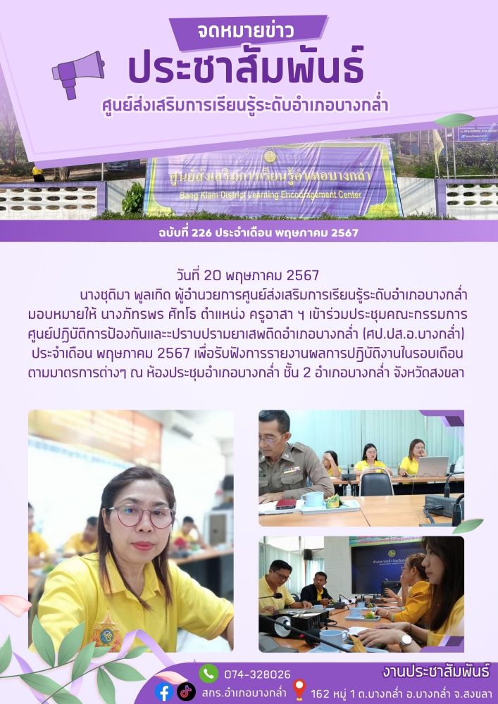 เข้าร่วมประชุมคณะกรรมการ ศูนย์ปฏิบัติการป้องกันและะปราบปรามยาเสพติดอำเภอบางกล่ำ (ศป.ปส.อ.บางกล่ำ)