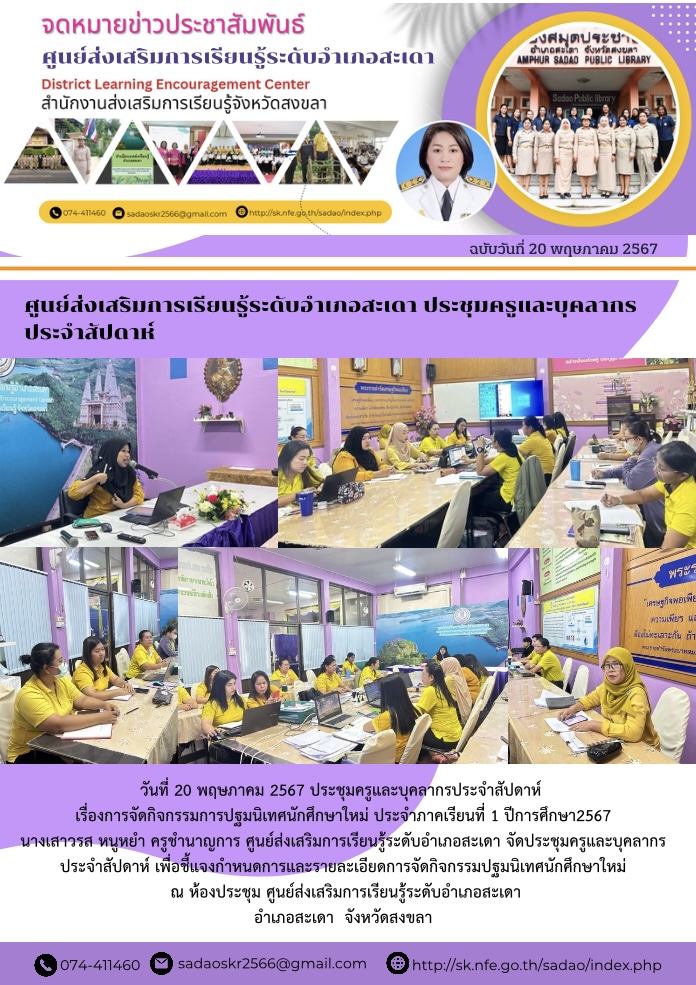 ศูนย์ส่งเสริมการเรียนรู้ระดับอำเภอสะเดา ประชุมครูและบุคลากร ประจำสัปดาห์