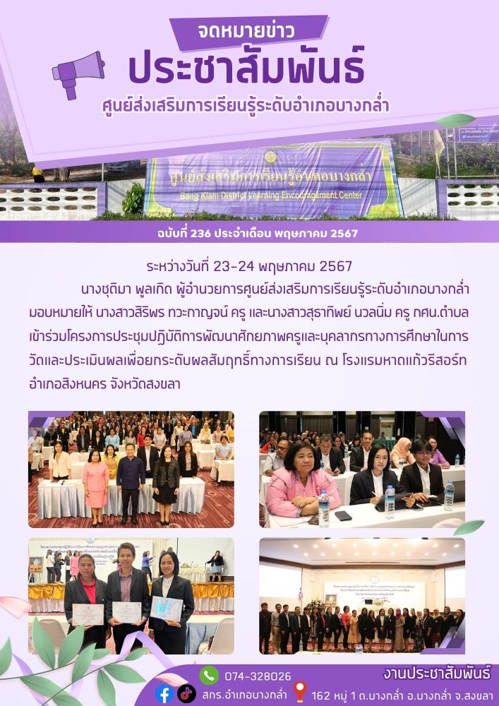 จัดกระบวนการเรียนรู้รายวิชา สังคมศึกษา ระดับมัธยมศึกษาตอนปลาย ณ ศูนย์การเรียนรู้ระดับตำบลบางกล่ำ 19 / ม.ค. / 2569