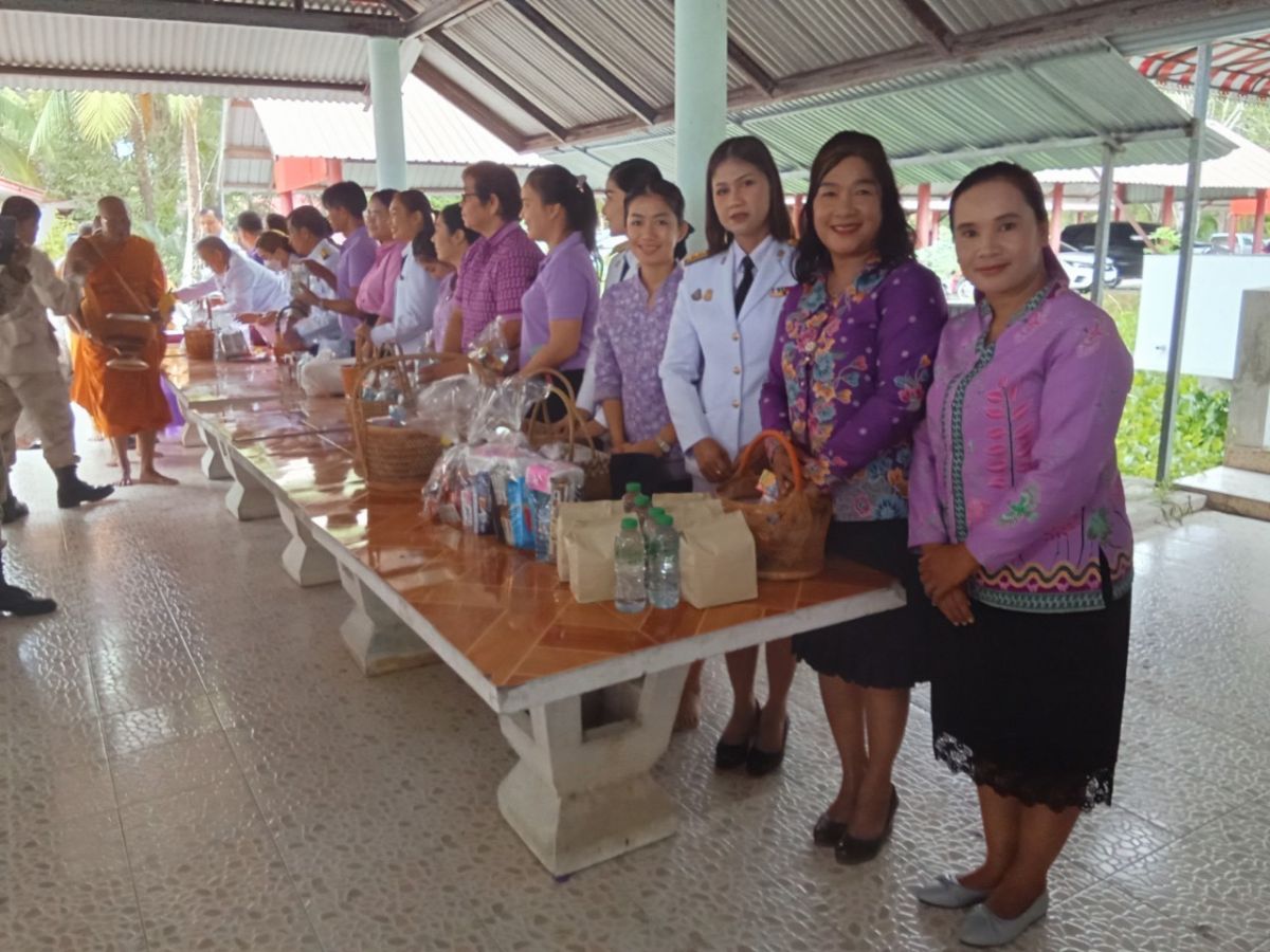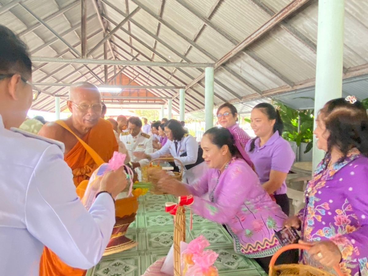 เข้าร่วมพิธีเจริญพระพุทธมนต์และทำบุญตักบาตรข้าวสารอาหารแห้ง แด่พระภิกษุสงฆ์ เพื่อถวายเป็นพระราชกุศล