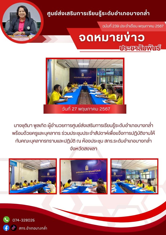 ประชุมประจำสัปดาห์เพื่อแจ้งการปฏิบัติงานให้กับคณะบุคลากรทราบและปฏิบัติ
