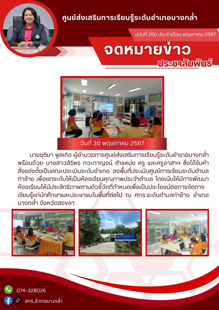 ประเมินศูนย์การเรียนระดับตำบลท่าช้าง เพื่อยกระดับให้เป็นห้องเรียนคุณภาพประจำตำบล