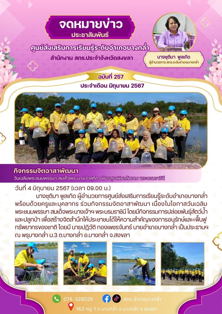 เข้าร่วมการฝึกอบรมปฏิบัติการงานสวนพฤกษศาสตร์โรงเรียน หลักสูตร 5 องค์ประกอบ ระหว่างวันที่ 13-16 มกราคม 2569 ณ ห้องนาฏศิลป์ ชั้น 1 สถาบันวัฒนธรรมศึกษากัลยาณิวัฒนา มหาวิทยาลัยสงขลานครินทร์ วิทยาเขตหาดใหญ่ 19 / ม.ค. / 2569