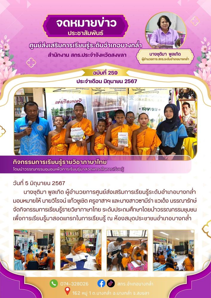 จัดกระบวนการเรียนรู้รายวิชา สังคมศึกษา ระดับมัธยมศึกษาตอนปลาย ณ ศูนย์การเรียนรู้ระดับตำบลบางกล่ำ 19 / ม.ค. / 2569
