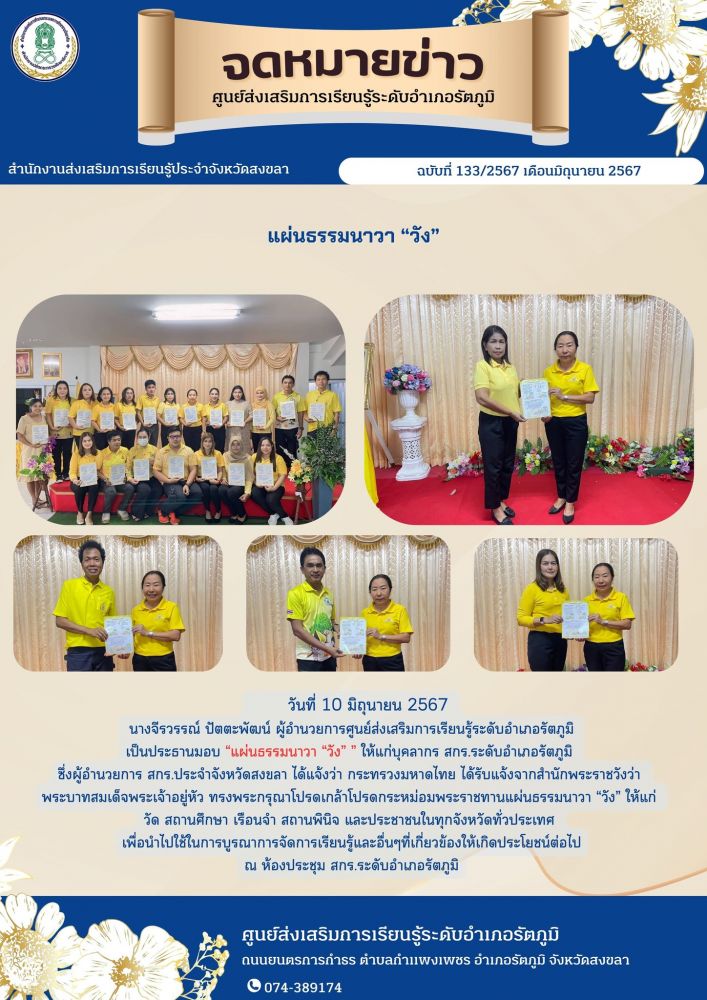 กิจกรรมมอบ “แผ่นธรรมนาวา “วัง” ” ให้แก่บุคลากร สกร.ระดับอำเภอรัตภูมิ