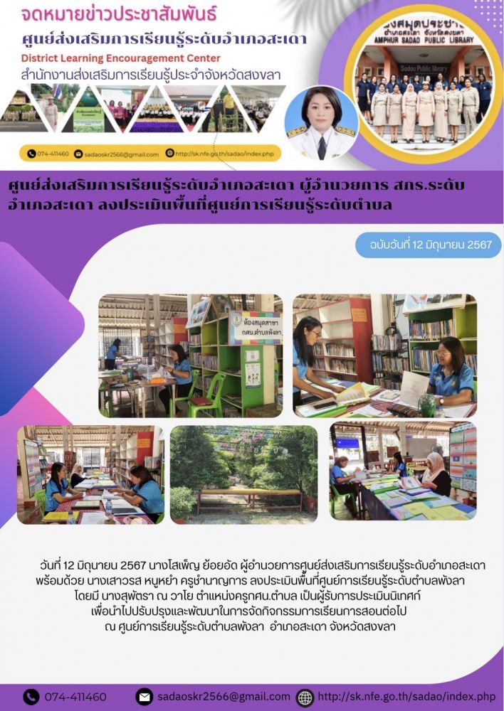 ศูนย์ส่งเสริมการเรียนรู้ระดับอำเภอสะเดา ผู้อำนวยการ สกร.ระดับอำเภอสะเดา ลงประเมินพื้นที่ศูนย์การเรียนรู้ระดับตำบล