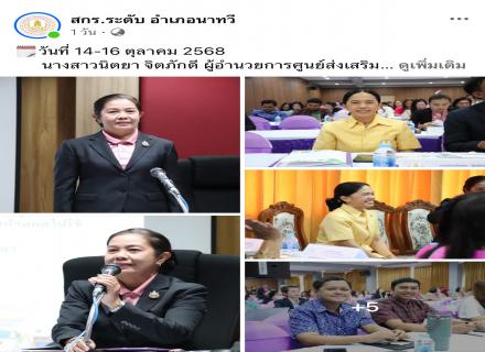&#128467;&#65039;วันที่ 14-16 ตุลาคม 2568 นางสาวนิตยา จิตภักดี ผู้อำนวยการศูนย์ส่งเสริมการเรียนรู้ระดับอำเภอนาทวี &#128073; พร้อมทั้งคณะบุคลากรสำนักงานส่งเสริมการเรียนรู้ประจำจังหวัดสงขลาเข้าร่วมโครงการประชุมเชิงปฏิบัติการการดำเนินงาน  เข้าชม :  [5]