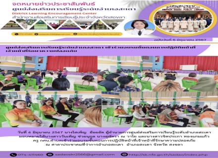 6 / มิ.ย. / 2567 : ศูนย์ สกร.ระดับอำเภอหาดใหญ่ |