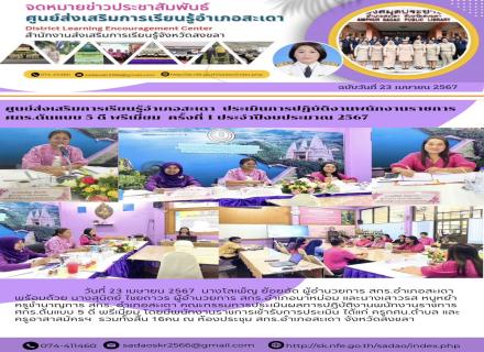 วันที่ 22-23 เมษายน 2567 นางจีรวรรณ์ ปัตตะพัฒน์ ผู้อำนวยการศูนย์ส่งเสริมการเรียนรู้อำเภอรัตภูมิ พร้อมด้วย นางถนอมพร อารมณ์เย็น ครู คศ.2 และ นางธมลพรรณ สัณวัชรนันท์ ครู คศ.1 ดำเนินการประเมินพนักงานราชการ ประจำไตรมาส 1-2 ปีงบประมาณ 2567 ณ ห้องประชุม สกร.อ |