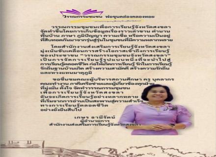 วรรณกรรมชุมชนเพื่อการเรียน สกร.จังหวัดสงขลา เรื่องราวที่ทรงคุณค่าของปูชนียบุคคลคลองหอยโข่ง |