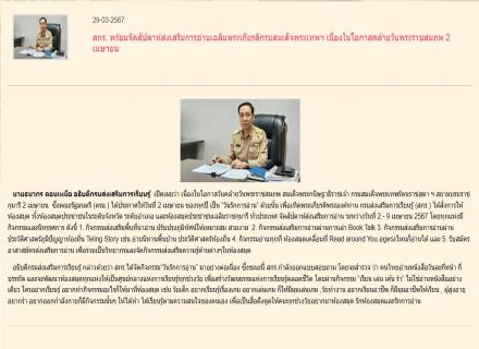 สกร. พร้อมจัดสัปดาห์ส่งเสริมการอ่านเฉลิมพระเกียรติกรมสมเด็จพระเทพฯ เนื่องในโอกาสคล้ายวันพระราชสมภพ 2 เมษายน