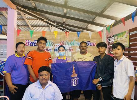 และองค์กรนักศึกษาร่วมบริจาคธงสัญลักษณ์พระจำพระองค์ให้แก่ อาสาสมัคร กศน.