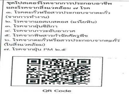 สามารถดาวน์โหลดสื่อประชาสัมพันธ์เพื่อเข้าถึงข้อมูลและการเฝ้าระวัง ป้องกัน คุ้มครองสุขภาพพที่เกิดจากการประกอบอาชีพ ตาม QR Code