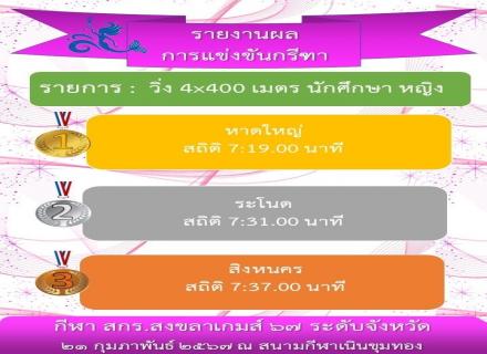 ขอแสดงความยินดีกับนักศึกษาที่ได้รับรางวัลในกิจกรรมแข่งขันกีฬา สกร.สงขลาเกมส์ ต้านยาเสพติด