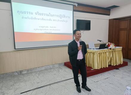 #12มีนาคม2567 เวลา 13.00 น. - 16.30 น. นายวิเชียร โชติช่วง ผู้อำนวยการศูนย์ส่งเสริมการเรียนรู้อำเภอจะนะ มอบหมายให้นายมู่หำหมัด บินล่าเต๊ะ ครูชำนาญการพิเศษ เป็นวิทยากรบรรยายให้ความรู้แก่นักศึกษาเทียบระดับการศึกษาครั้งที่ 2/2566 ประเด็น คุณธรรมจริยธรรมในการ |