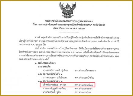 ผลการแข่งขันตอบคำถามคำสารานุกรมไทยสำหรับเยาวชนฯ ประจำปีงบประมาณ พ.ศ 2567