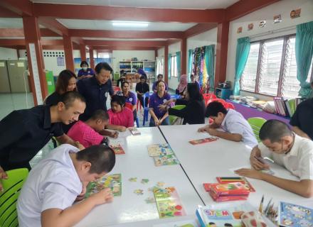 นางสาวยุพเรศ สุวรรณะ ครู คศ.2 รักษาการในตำแหน่ง ผุ้อำนวยการศูนย์ส่งเสริมการเรียนรู้อำเภอคลองหอยโข่ง มอบหมายให้ นายศิริชัย บุญช่วย ครูศูนย์การเรียนรู้ตำบลโคกม่วง ตัวแทนองค์กรนักศึกษา พร้อมด้วยบุคลากร สกร.อำเภอคลองหอยโข่ง จัดกิจกรรม ศคส.ปันสุข สนุกกับกา |